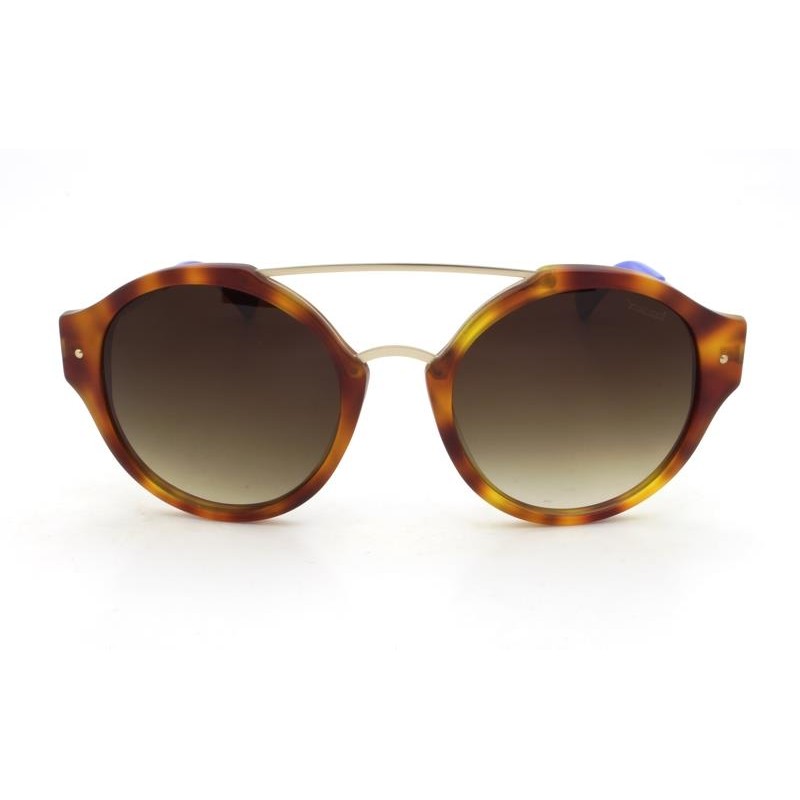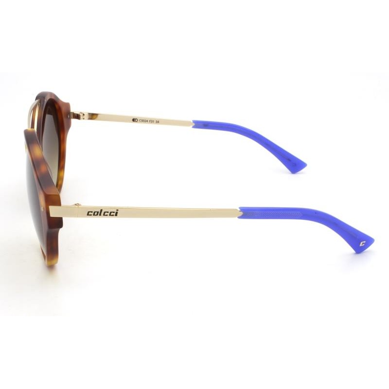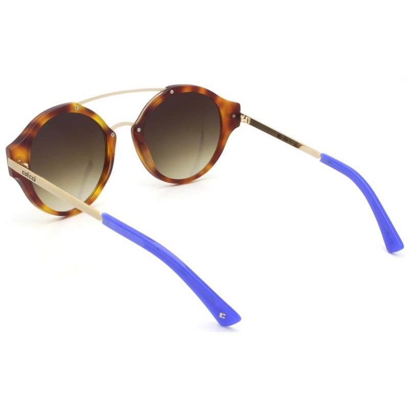 ÓCULOS DE SOL COLCCI FEMININO, COM HASTE DE ACETATO E METAL NAS CORES TARTARUGA DOURADO E AZUL, COM LENTES MARROM DEGRADÊ.