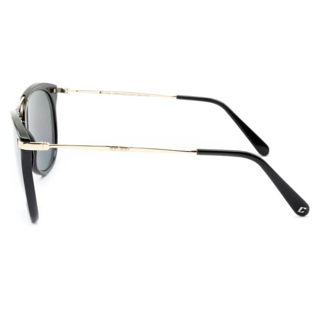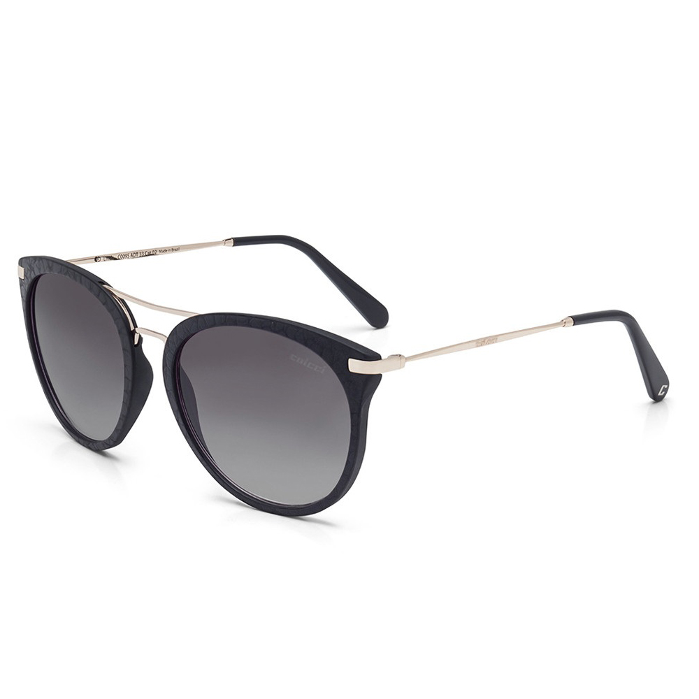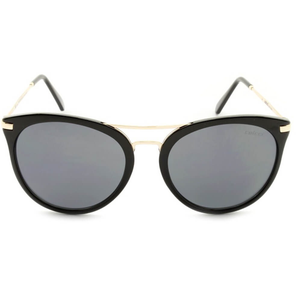 ÓCULOS DE SOL COLCCI FEMININO, COM HASTE DE ACETATO E METAL NAS CORES PRETO E DOURADO E COM LENTES CINZAS.