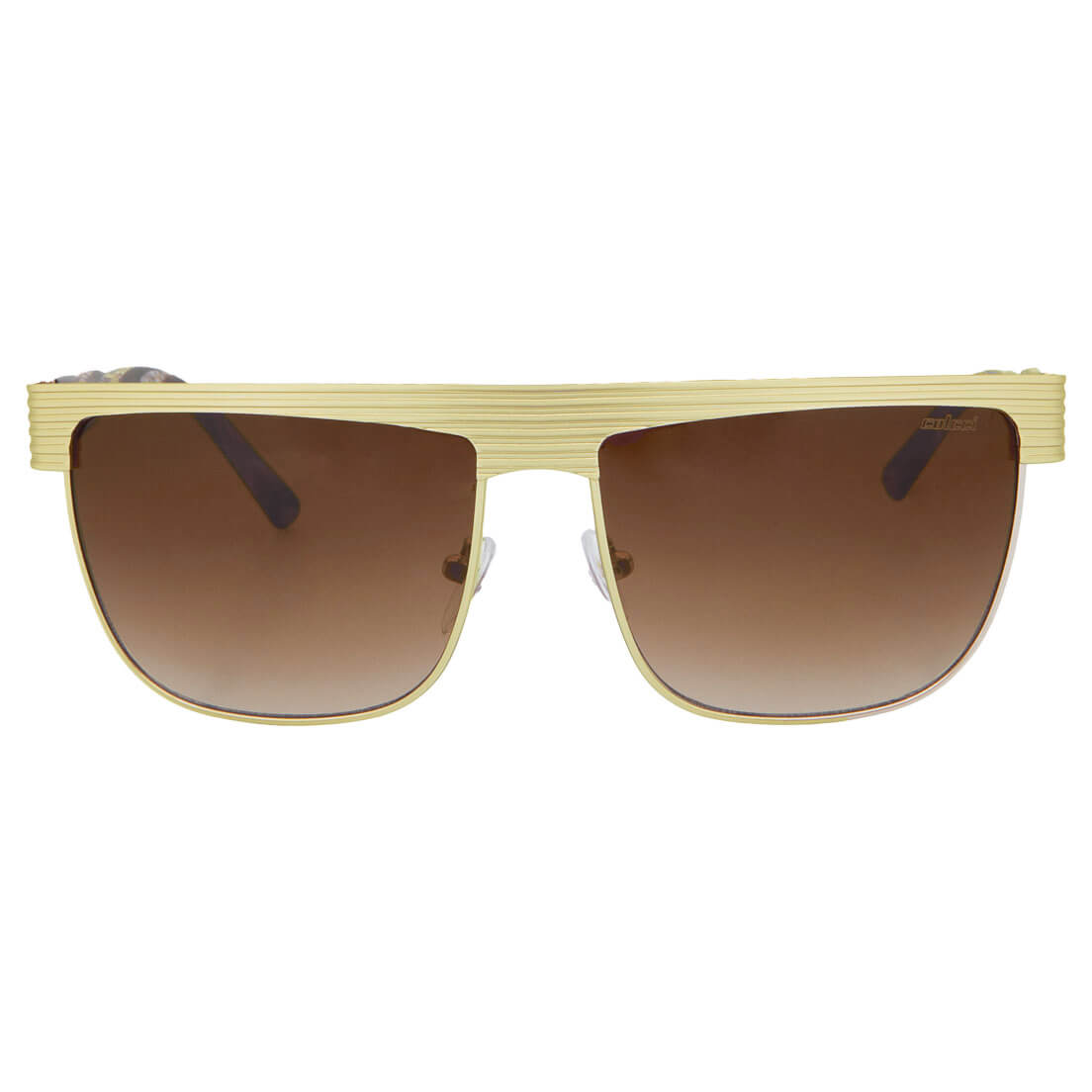 ÓCULOS DE SOL COLCCI MASCULINO, COM HASTE DE METAL DOURADO E PRETO, COM LENTES MARROM DEGRADÊ.