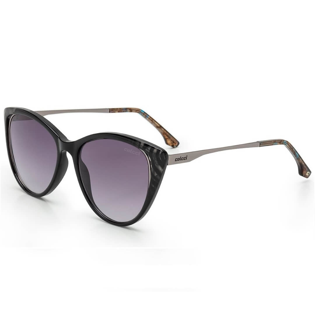 ÓCULOS DE SOL FEMININO COLCCI, COM HASTE DE METAL E ACETATO NAS CORES PRETO E GRAFITE, COM LENTES CINZA DEGRADÊ.