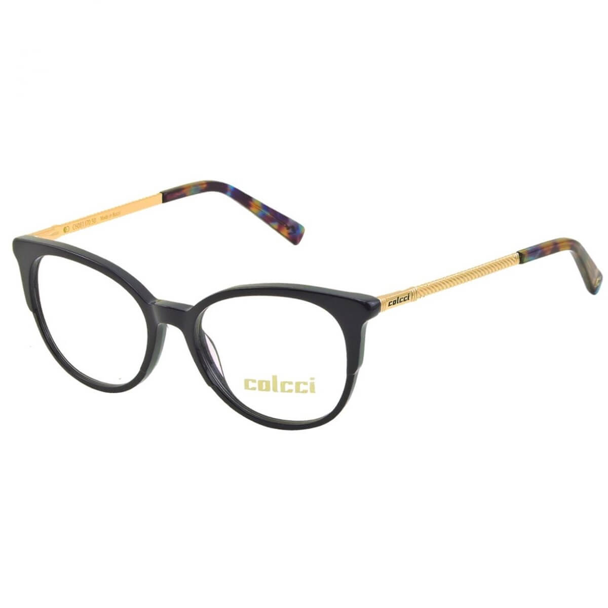Armação colcci feminino c6097 k75 ARMAÇÃO PARA ÓCULOS DE GRAU FEMININO, COM HASTE DE METAL E ACETATO NA COR AZUL JEANS, DOURADO E PRETO.