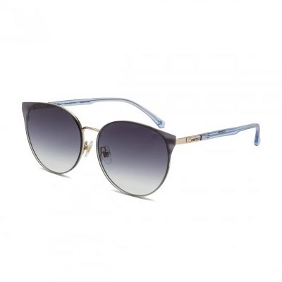 ÓCULOS DE SOL COLCCI FEMININO, COM HASTE DE METAL E ACETATO NAS CORES DOURADO E AZUL E LENTES AZUIS DEGRADÊ.