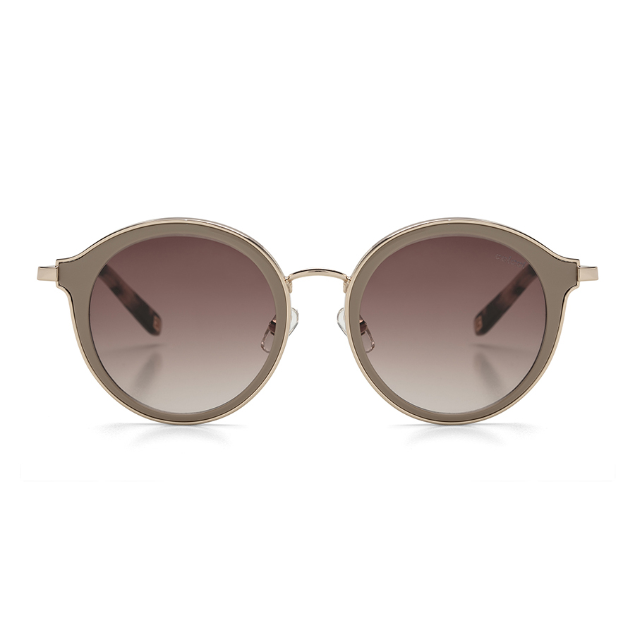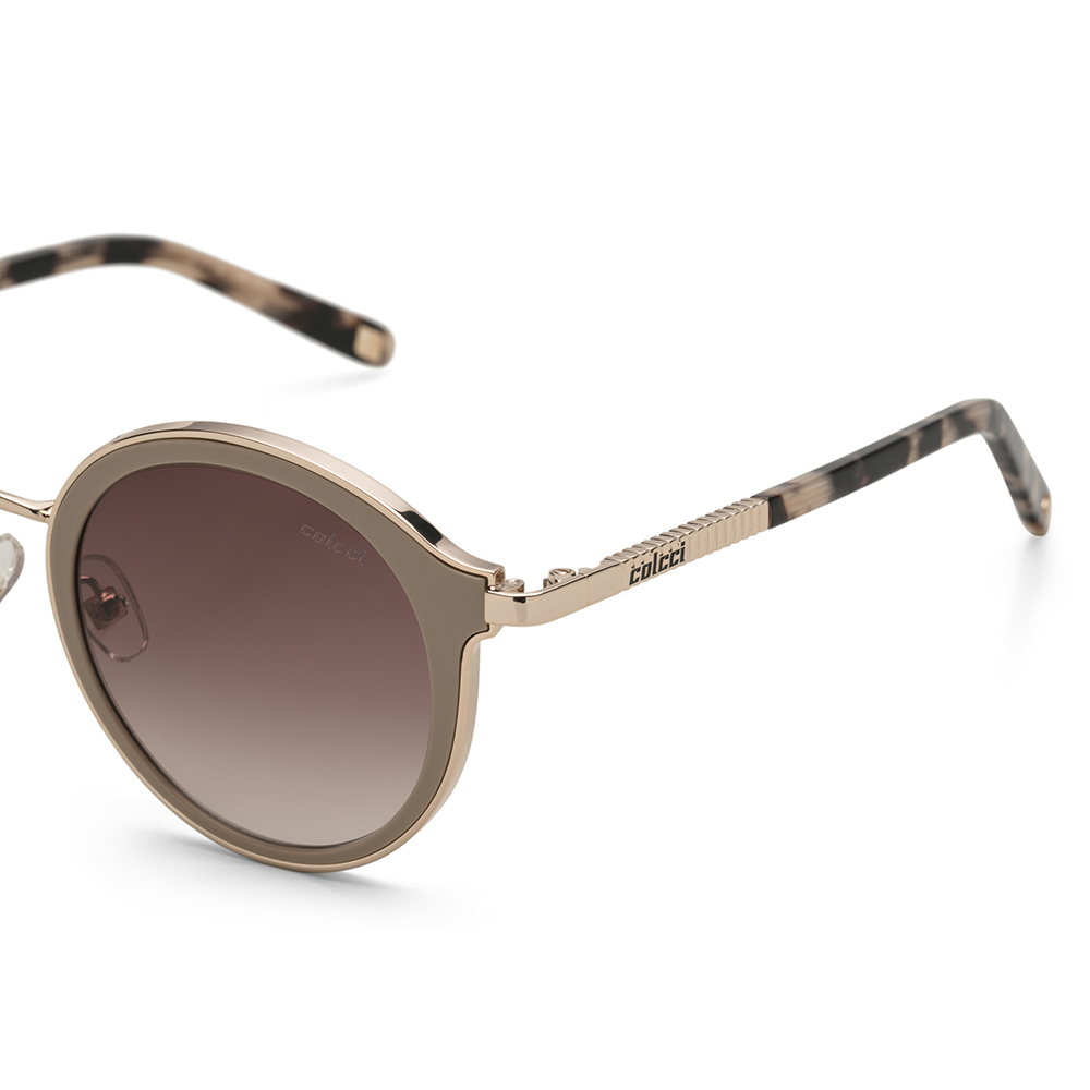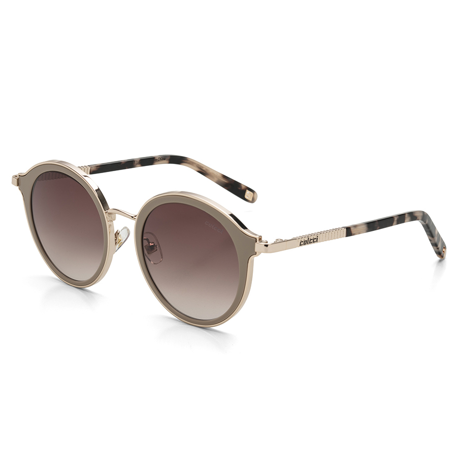 ÓCULOS DE SOL FEMININO COLCCI, COM HASTE DE ACETATO E METAL NAS CORES MARROM E BRONZE E COM LENTES MARROM DEGRADÊ.