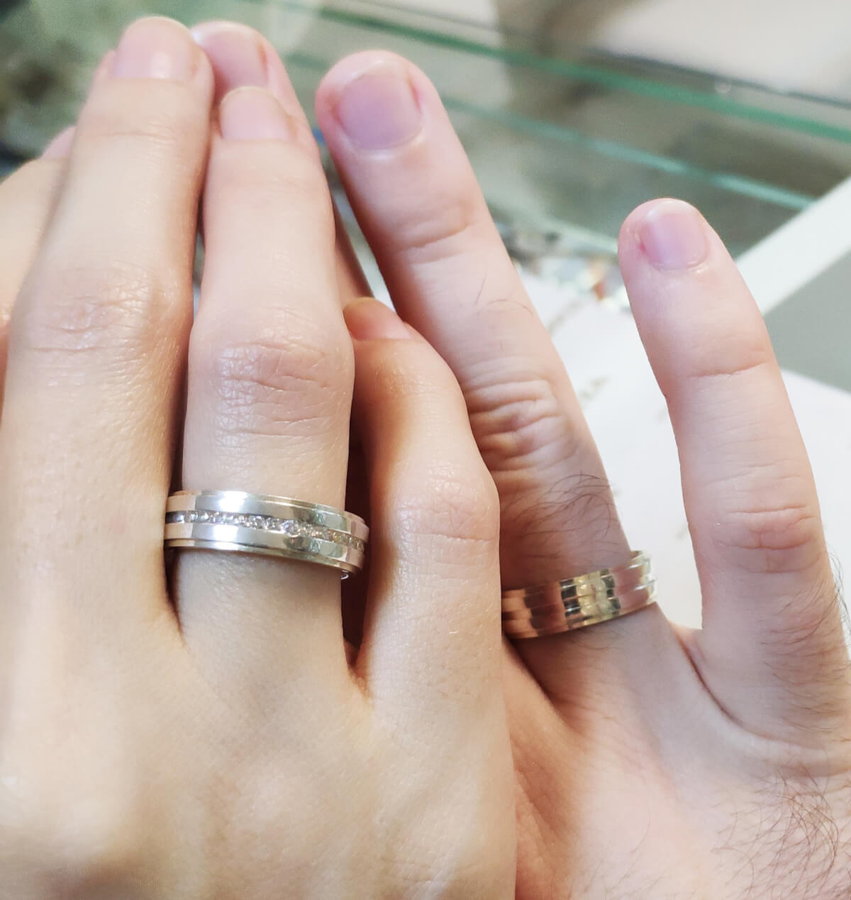 Par de aliança de prata 950 tradicional, de 8mm de largura.