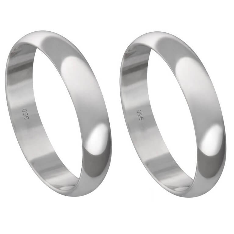 Par de aliança de prata 950 tradicional, de 4,5mm de largura.