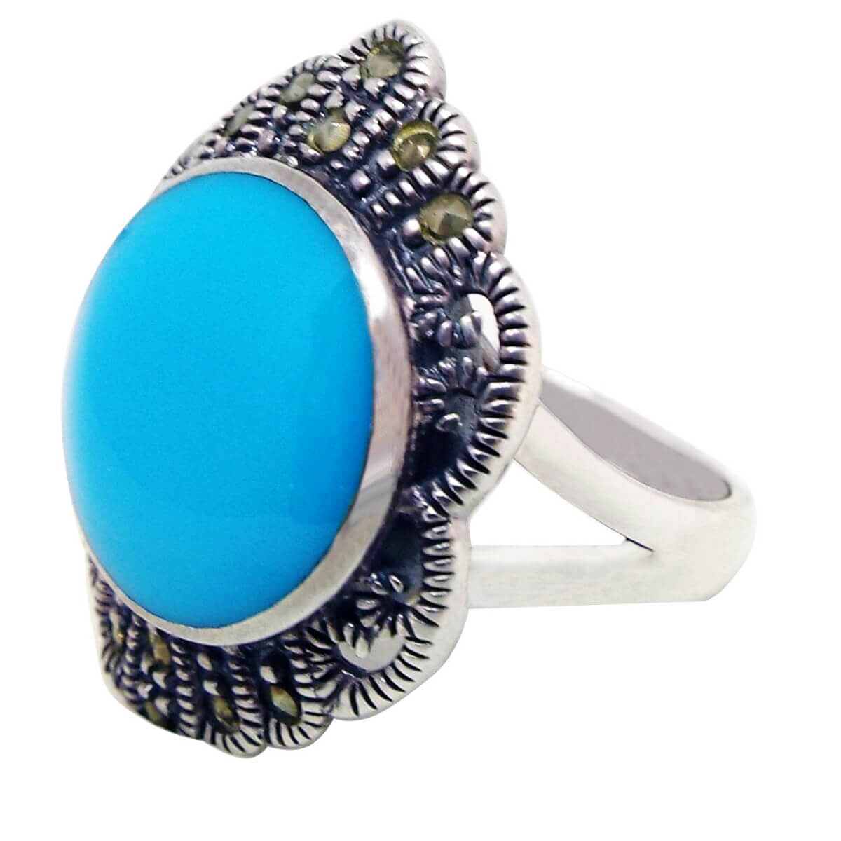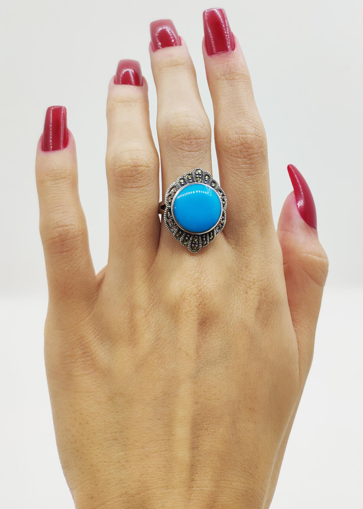 Anel de prata com pedra de Turquesa circular
