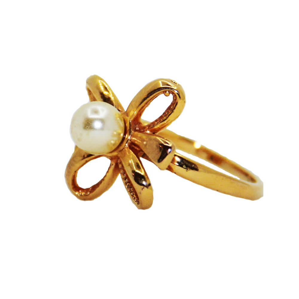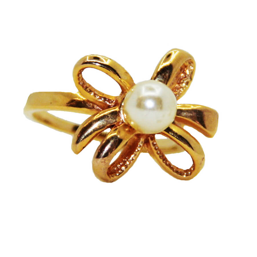 ANEL DE LAÇO COM PÉROLA FOLHEADO A OURO