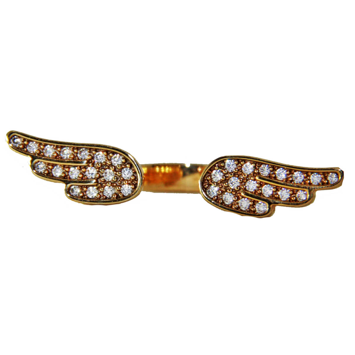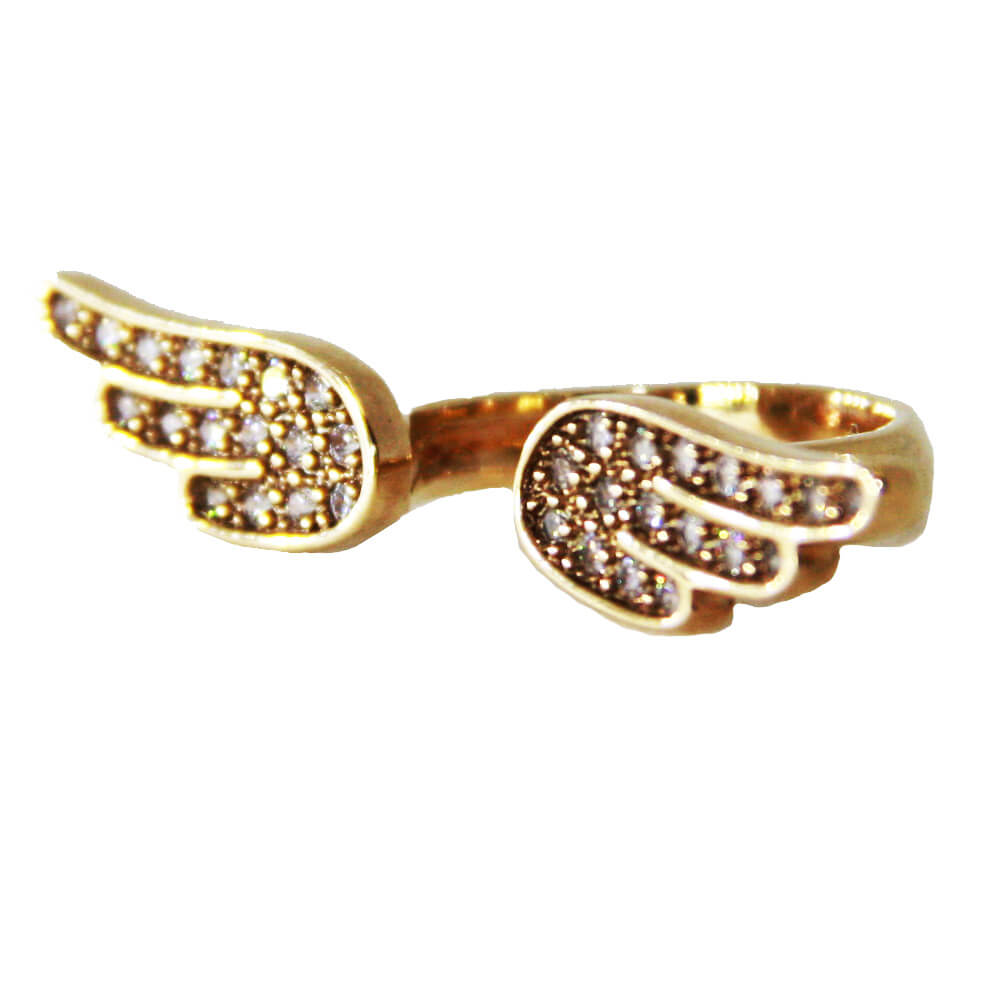 ANEL FOLHEADO A OURO COM ASAS E PEDRAS DE ZIRCÔNIA