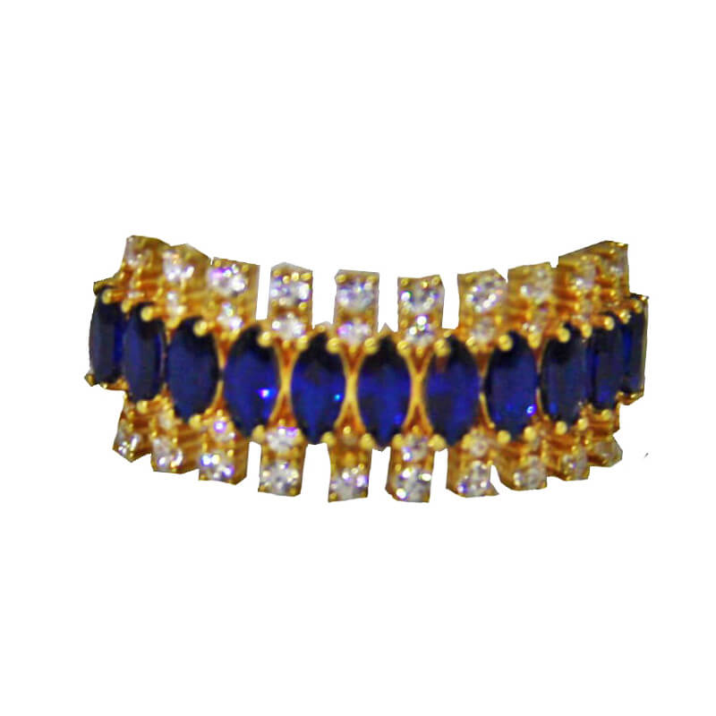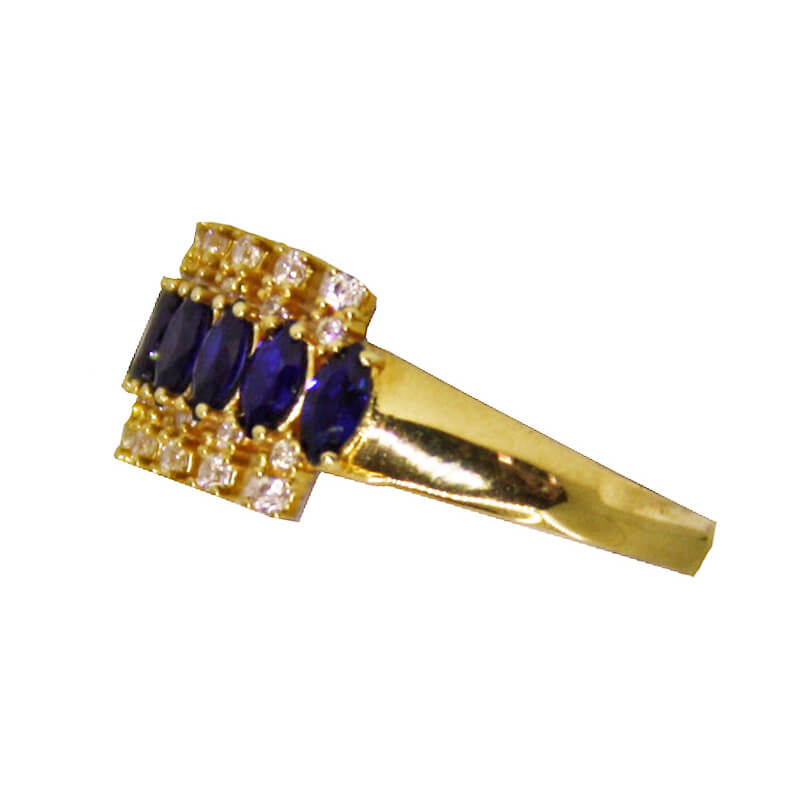 ANEL COM PEDRAS DE SAFIRA E ZIRCÔNIA