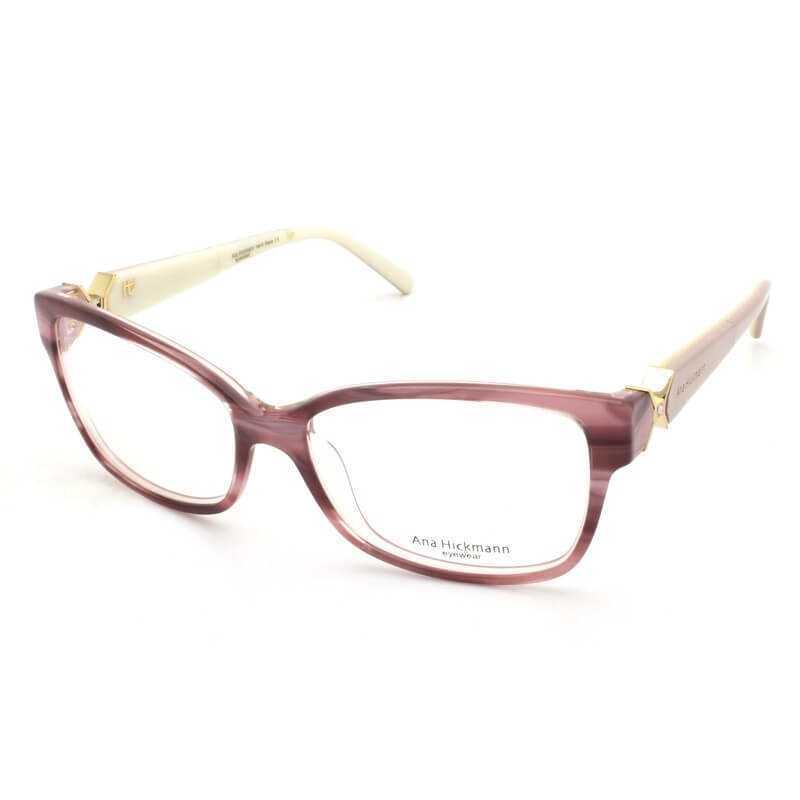 ARMAÇÃO PARA ÓCULOS DE GRAU FEMININO ANA HICKMANN, COM HASTE DE ACETATO E METAL NAS CORES AZUL E DOURADO.