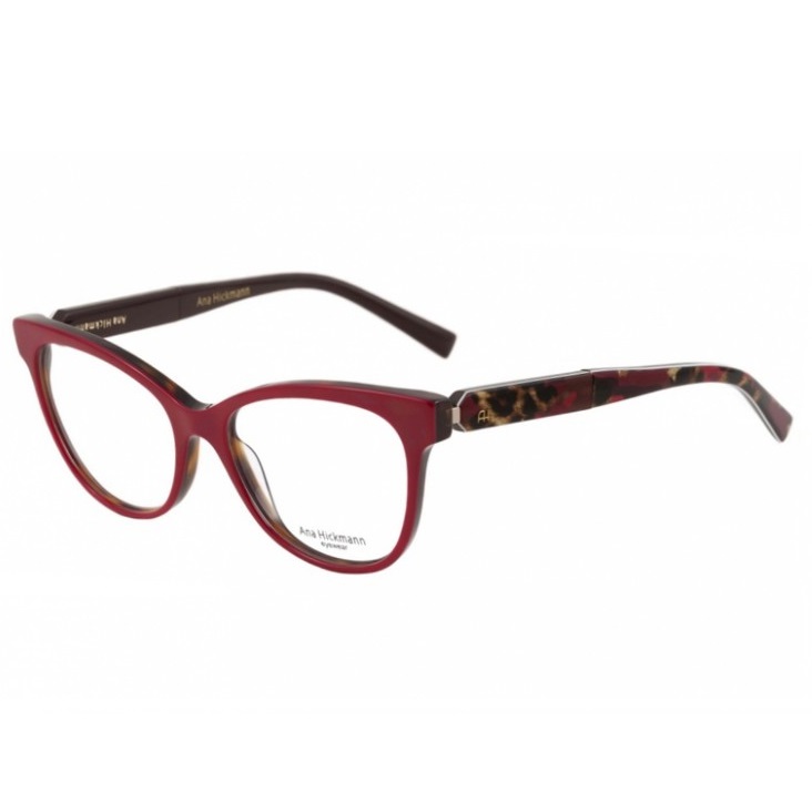 ARMAÇÃO PARA ÓCULOS DE GRAU ANA HICKMANN FEMININO, COM HASTE DE ACETATO COR VERMELHO E ANIMAL PRINT.