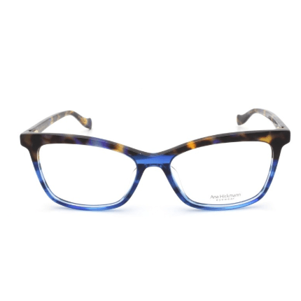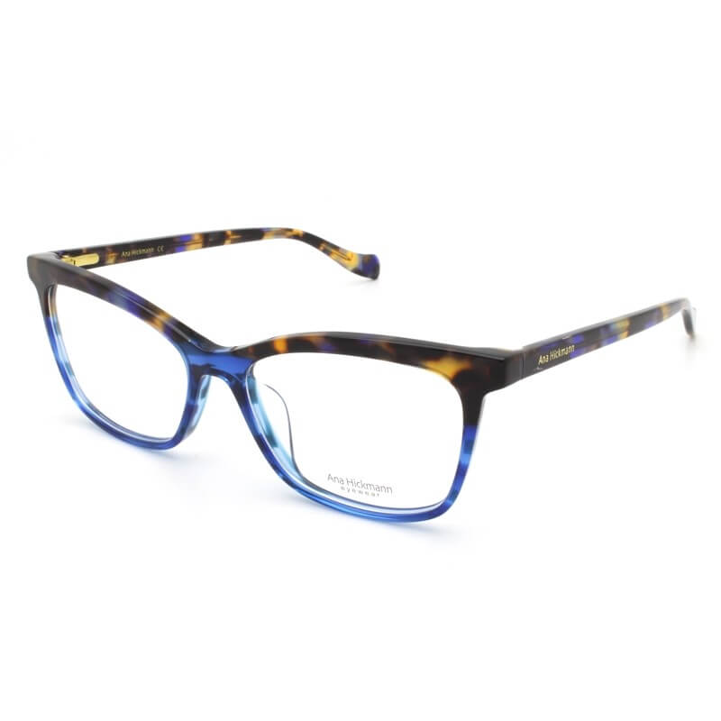 ARMAÇÃO PARA ÓCULOS DE GRAU FEMININO ANA HICKMANN, COM HASTE DE ACETATO COR TARTARUGA E AZUL.