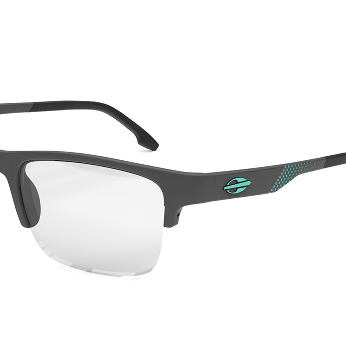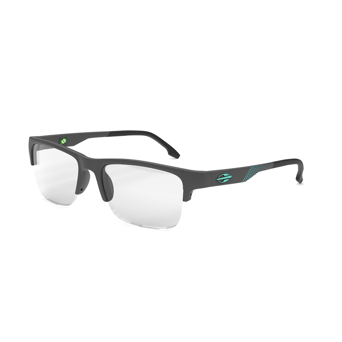 ARMAÇÃO PARA ÓCULOS DE GRAU MASCULINO MORMAII, COM HASTE DE ACETATO COR CINZA ESCURO COM DETALHES VERDES.