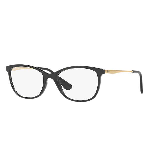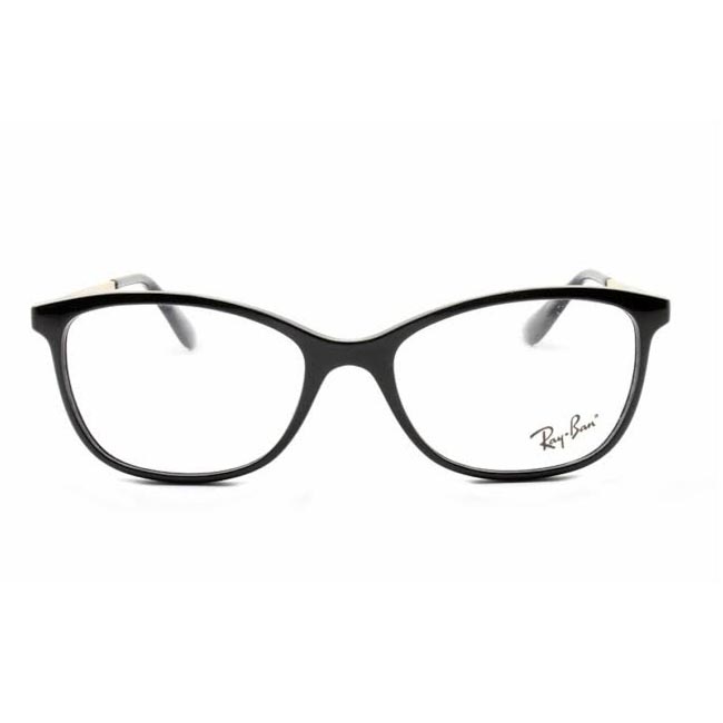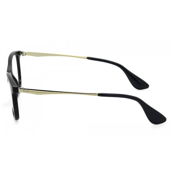 ARMAÇÃO PARA ÓCULOS DE GRAU FEMININA RAY-BAN, COM HASTE DE ACETATO E METAL NA COR PRETA E DOURADA.