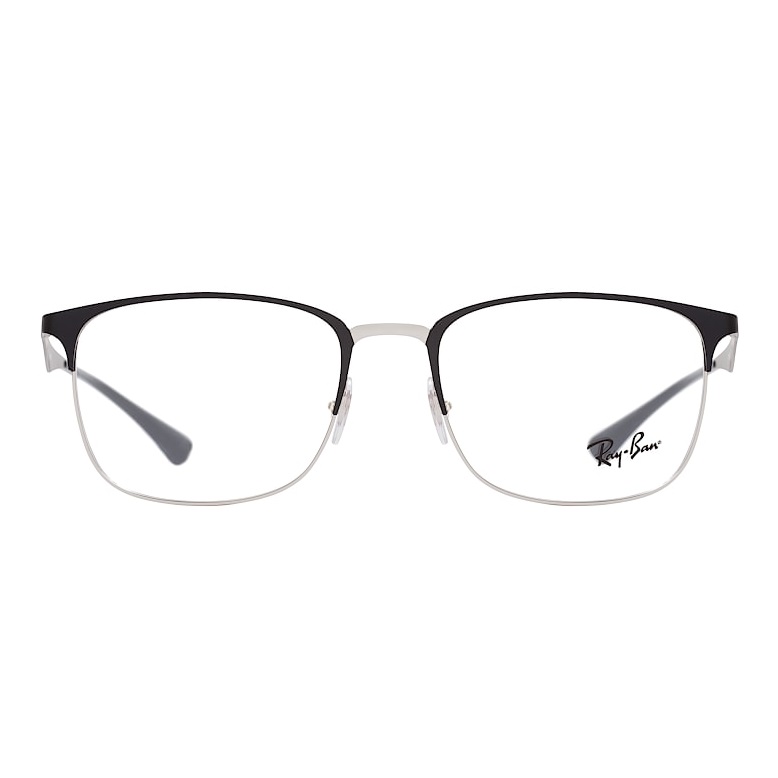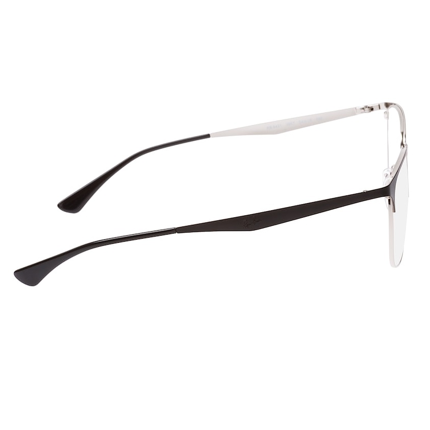 ARMAÇÃO PARA ÓCULOS DE GRAU MASCULINO RAY-BAN, COM HASTE DE METAL PRETO E PRATA.