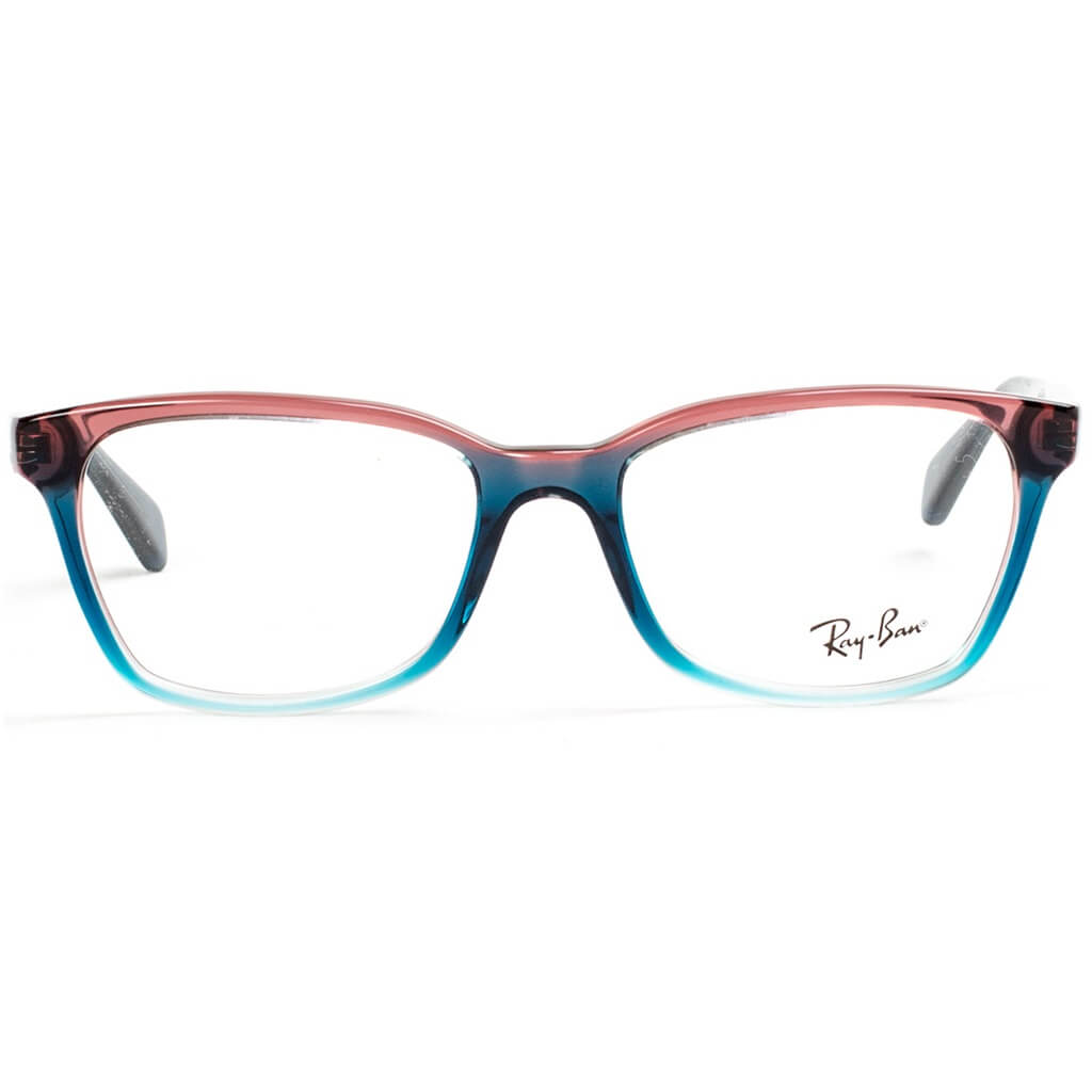 Armação de óculos de grau feminino Ray-ban, em acetato, nas cores rosa, azul e incolor.