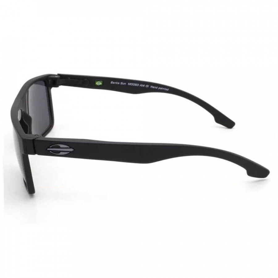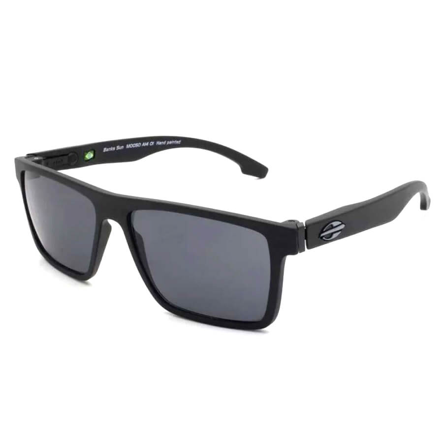 ÓCULOS DE SOL MASCULINO MORMAII, COM HASTE DE ACETATO PRETO FOSCO E LENTES CINZAS.