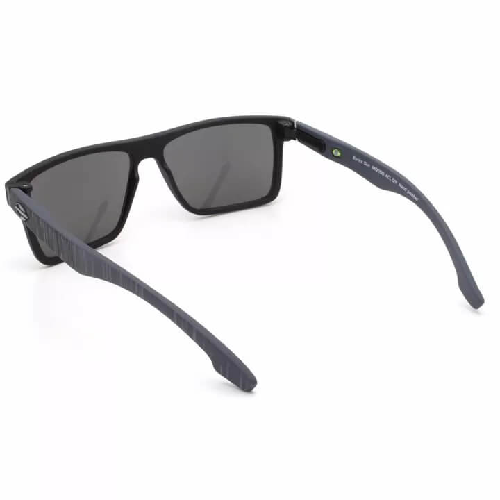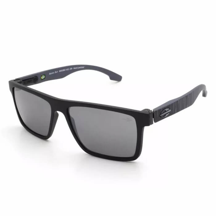 ÓCULOS DE SOL MORMAII MASCULINO, COM HASTE DE ACETATO COR CINZA E PRETO E COM LENTES CINZA.