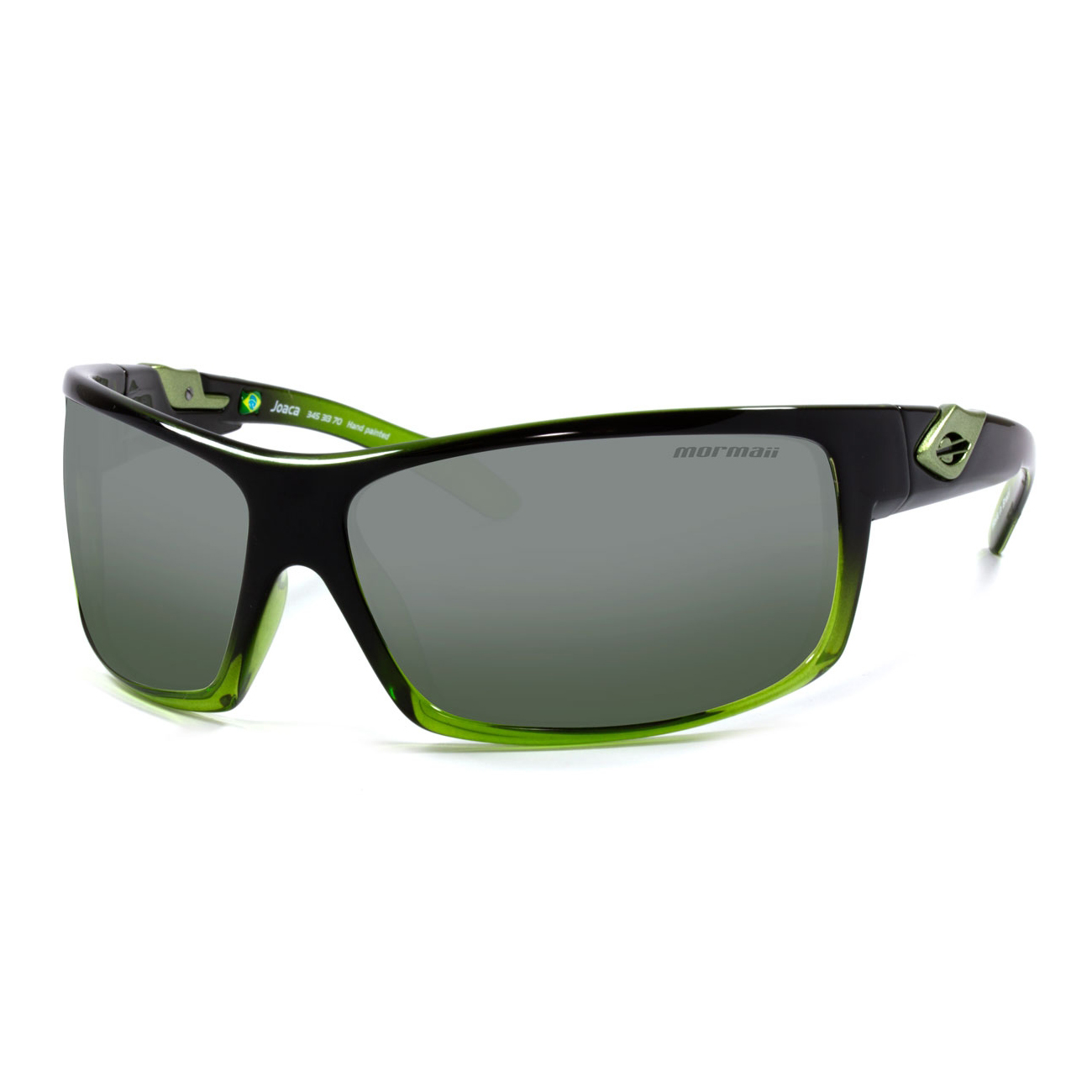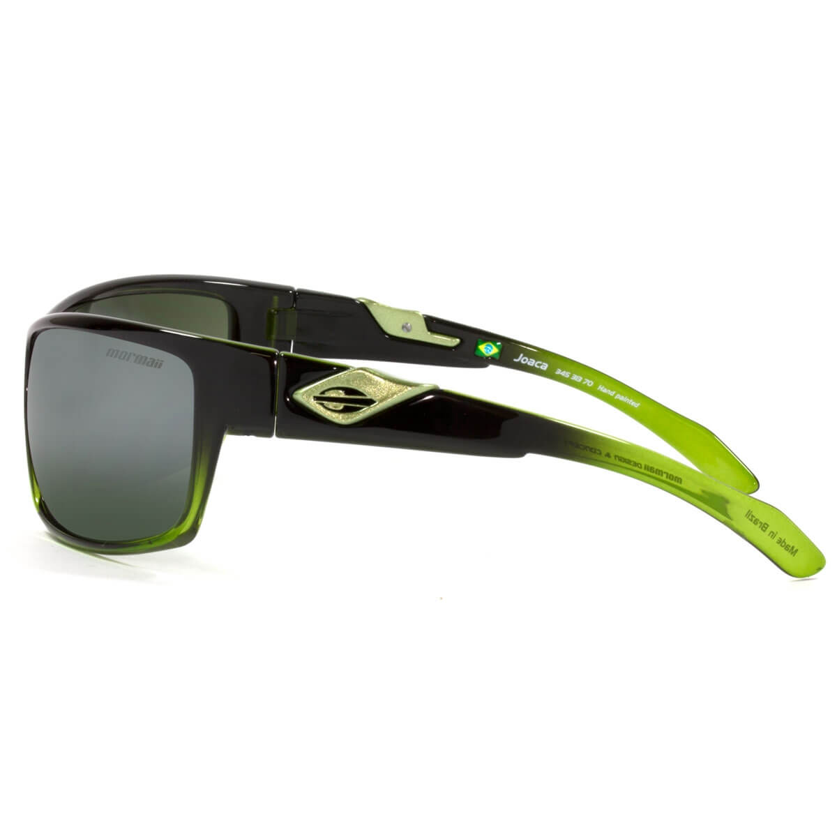 ÓCULOS DE SOL MORMAII MASCULINO, COM HASTE DE ACETATO NA COR PRETA E LENTES VERDES.