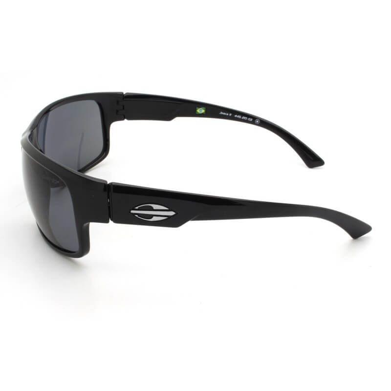 ÓCULOS DE SOL MASCULINO MORMAII, COM HASTE DE ACETATO PRETO FOSCO E LENTES CINZAS.