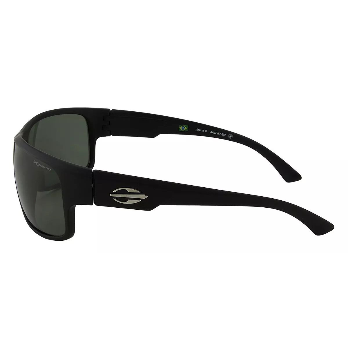 ÓCULOS DE SOL MORMAII MASCULINO, COM HASTE DE ACETATO COR PRETO FOSCO COM DETALHES EM VERMELHO E LENTES COR CINZA POLARIZADAS.