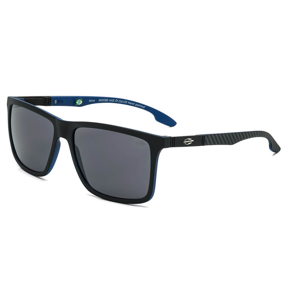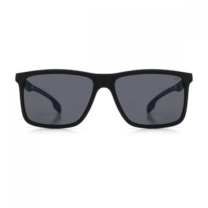 ÓCULOS DE SOL MASCULINO MORMAII, COM HASTE DE ACETATO COR PRETO COM DETALHES CINZAS E LENTES POLARIZADAS COR VERDE.