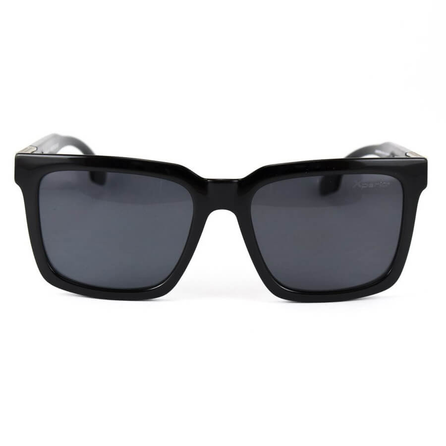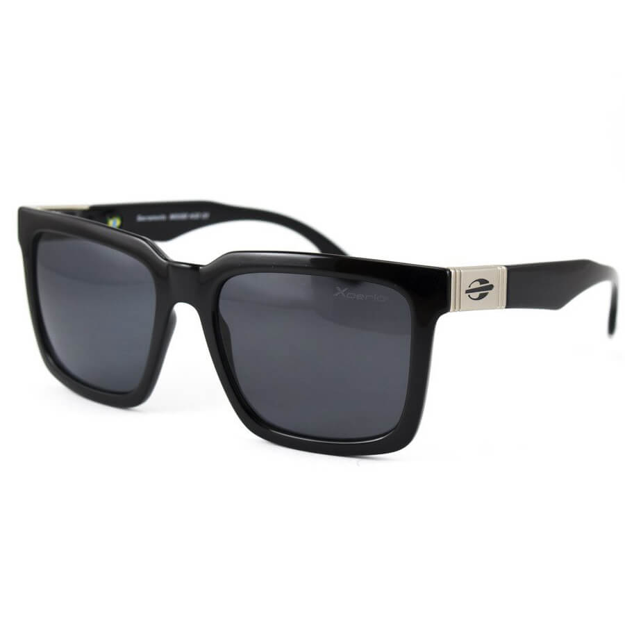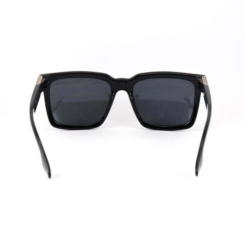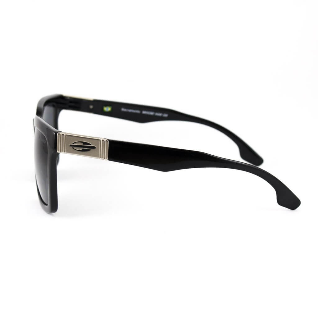 ÓCULOS DE SOL MASCULINO MORMAII, COM HASTE DE ACETATO COR PRETO BRILHO, COM DETALHE METÁLICO NAS EXTREMIDADES E COM LENTES POLARIZADAS COR CINZA.