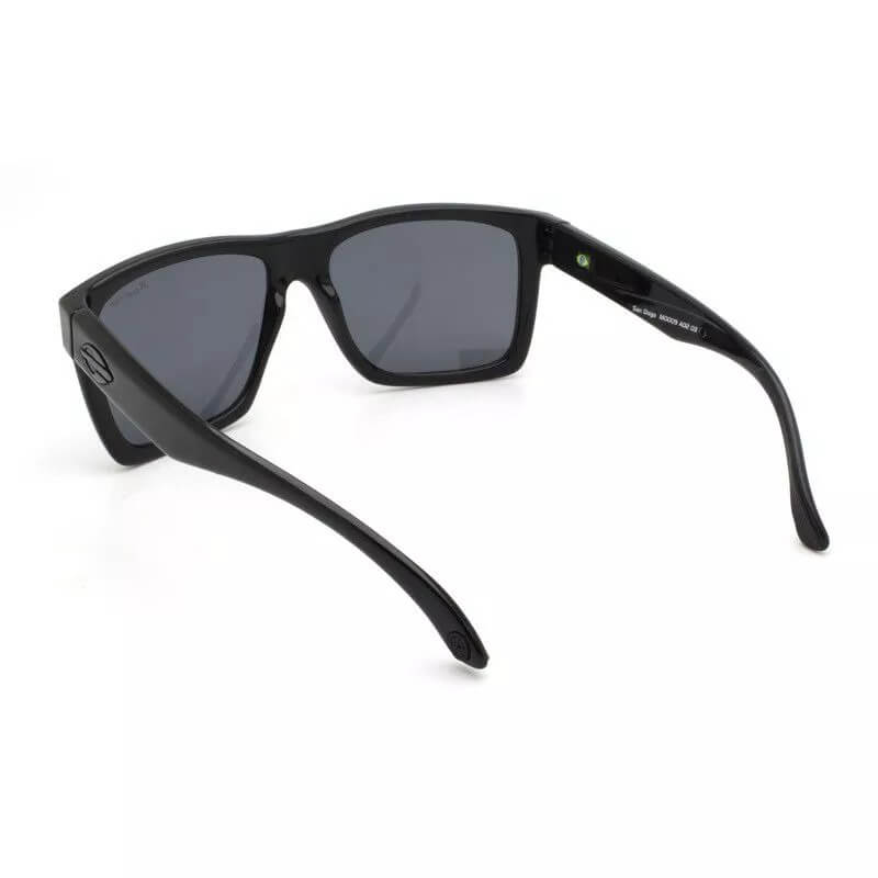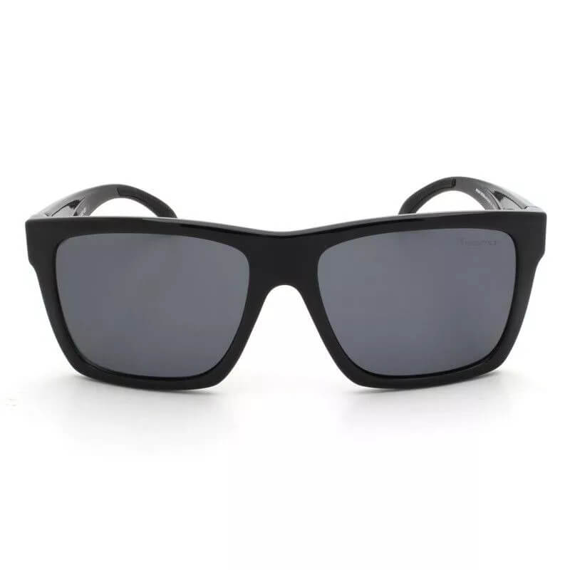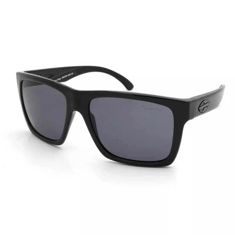 ÓCULOS DE SOL MASCULINO MORMAII, COM HASTE DE ACETATO COR PRETO BRILHO E LENTES POLARIZADAS COR CINZA.