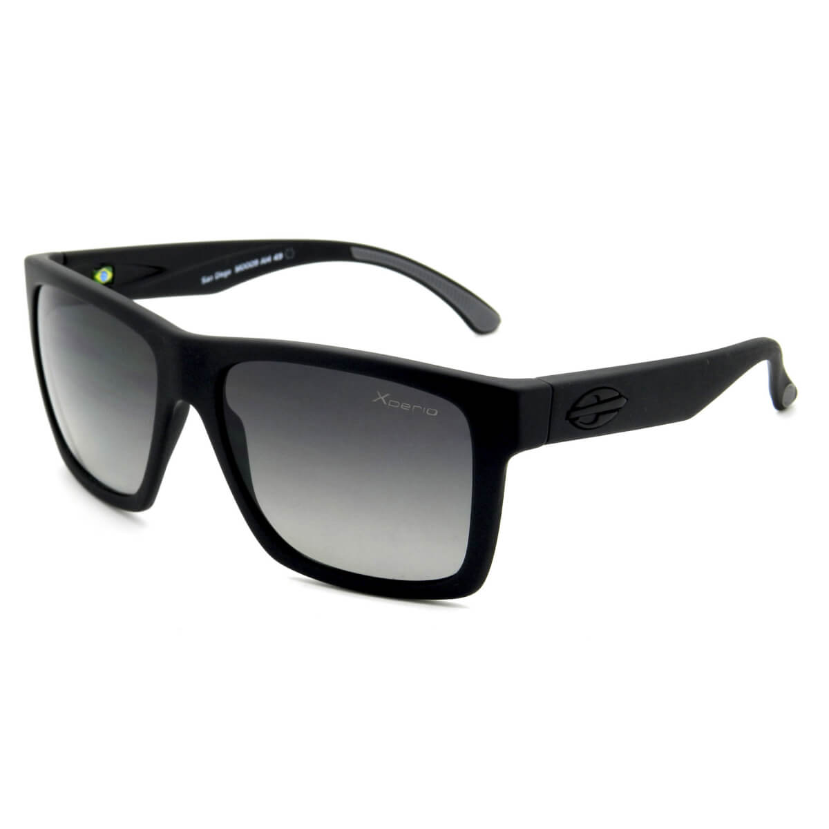 ÓCULOS DE SOL MASCULINO MORMAII, COM HASTE DE ACETATO COR PRETO BRILHO E LENTES POLARIZADAS COR CINZA.