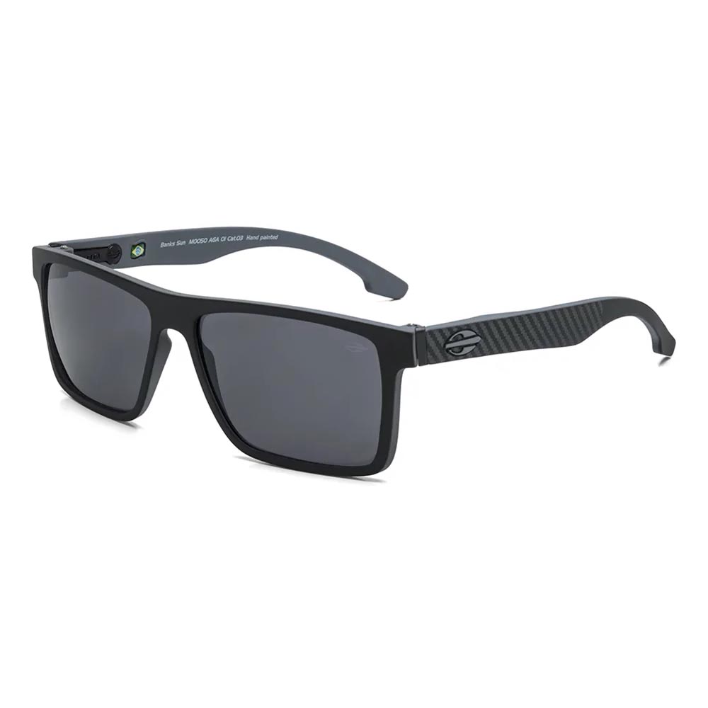 ÓCULOS DE SOL MORMAII SAN DIEGO MASCULINO, COM HASTE DE ACETATO COR PRETO FOSCO E CINZA E LENTES CINZA.