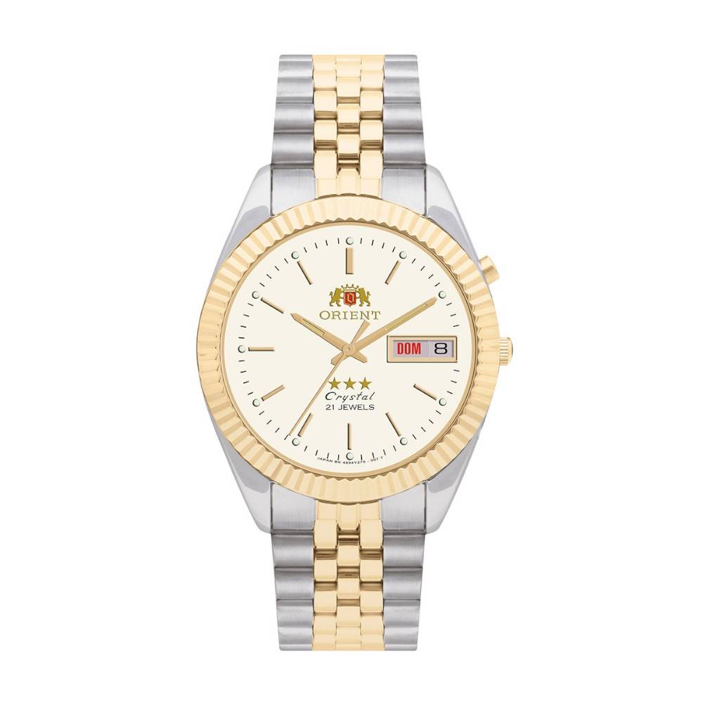 RELÓGIO ORIENT FEMININO 469ED1 S1KS PULSIERA PRATA COM DETALHES EM DOURADO, MOSTRADOR COM FUNDO PEROLADO E DETALHES EM DOURADO.