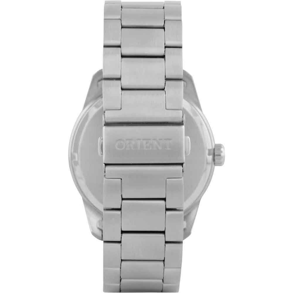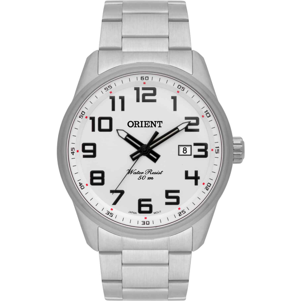 RELÓGIO ORIENT ANALÓGICO MASCULINO, COM PULSEIRA DE METAL PRATA E COM MOSTRADOR BRANCO.