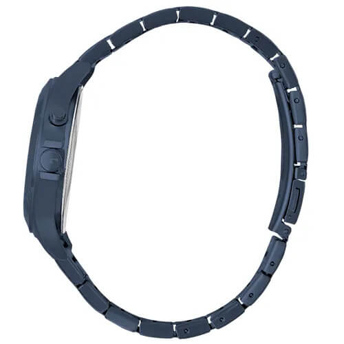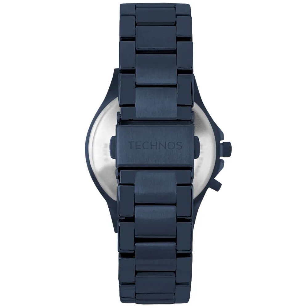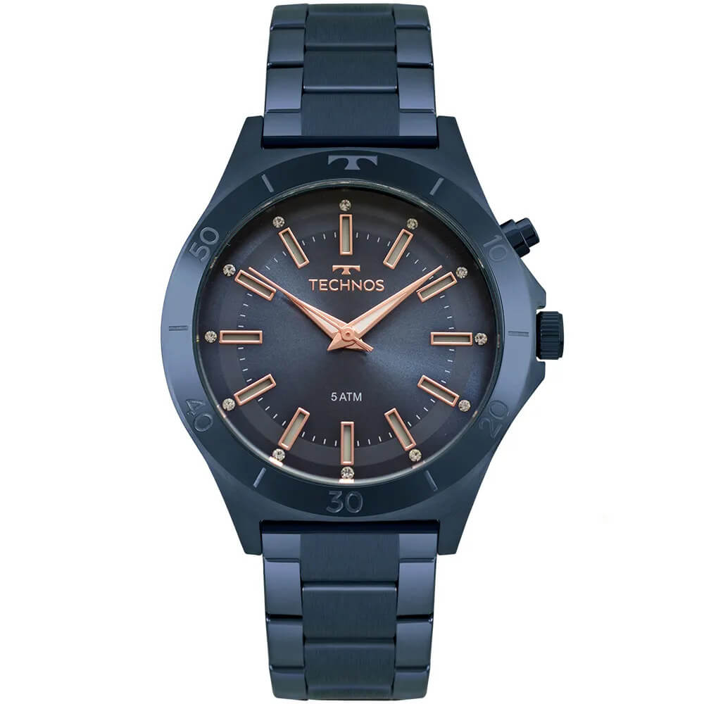 RELÓGIO TECHNOS FEMININO ANALÓGICO, COM PULSEIRA DE METAL AZUL MARINHO, COM MOSTRADOR DE FUNDO AZUL COM DETALHES ROSÉ.